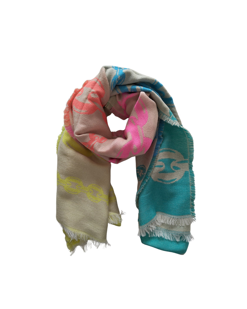 The Loved Up Scarf has a neutral base with colourful chain design.