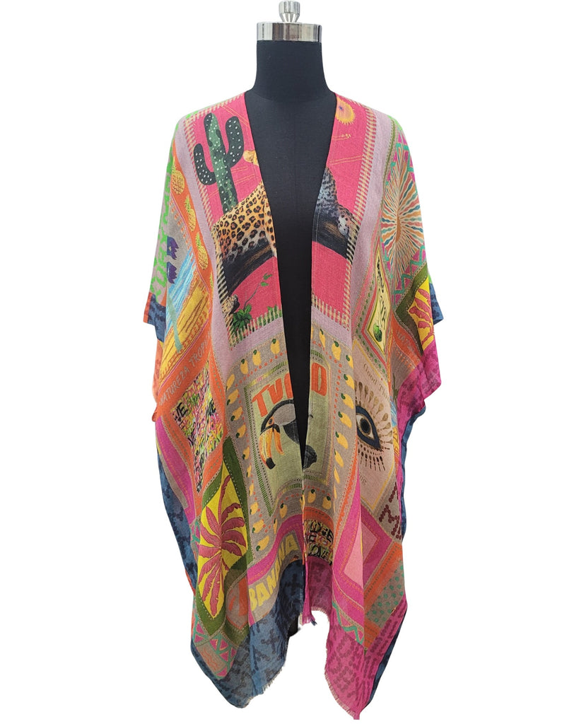 The Salisa Tropical Lux throwover is an amazing all seasons multi-functional wrap/scarf, and is a “must have” for your wardrobe.  This style has elbow length arms, so can be used as a scarf by using the arm holes.