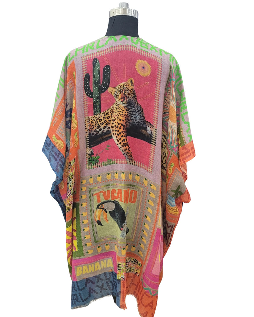 The Salisa Tropical Lux throwover is an amazing all seasons multi-functional wrap/scarf, and is a “must have” for your wardrobe. This style has elbow length arms, so can be used as a scarf by using the arm holes.